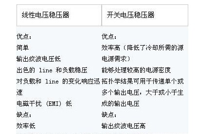 1.线性稳压器与开关稳压器的主要优劣势特点如下表所示: